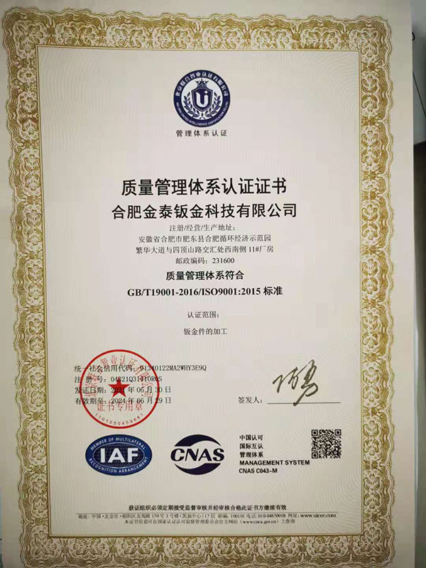 合肥金泰鈑金科技有限公司,專業(yè)從事精密鈑金件加工的新技術股份制企業(yè),主要承接各類鈑金加工、激光切割、沖壓件、機箱機柜、設備外殼、不銹鋼產(chǎn)品的精密鈑金加工制作。